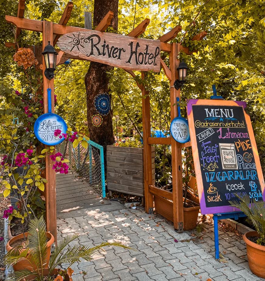 Adrasan’ın en eski otellerinden birisi olan River Hotel, kusursuz bir Adrasan tatili geçirmeniz için siz değerli misafirlerini bekliyor. Adrasan River Hotel, 10 yılı aşkın bir süredir yerli ve yabancı binlerce müşteriyi ağırlamış ve kendi evinde gibi hissettirmiştir. Şirin bir tatil beldesi olan Adrasan; eşsiz koyu, tertemiz ve bereketli denizi, çam ağaçlarıyla kaplı ormanları, tatlı rüzgarlara ev sahipliği yapan tepeleri, kuş cıvıltıları ve dere içinde yüzen sevimli ördekleriyle her yaştan insanı tatile çağırıyor. Türkiye’nin en güzel denizinde yüzmek için elinizi çabuk tutun. River Hotel’de sizler için özenle hazırladığımız özel localarda oturup, Adrasan Deresi’ne ayaklarınızı uzatarak serinliğin tadını çıkarabilir kahvenizi keyifle yudumlayabilirsiniz. Ördeklerimizle birlikte kahvaltı yaparken derenin içerisinde yüzen balıkları seyredebilirsiniz. River Hotel’de dilerseniz bungalov evlerimizde veya standart odalarımızda konaklayabilir, dilerseniz otelimizde konaklama yapmadan resta...