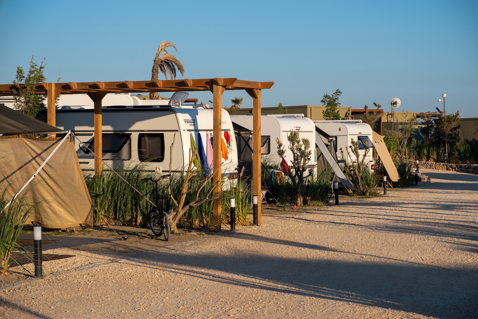 - İmkanlar: Her karavan parselinde 220V elektrik bağlantısı ve su tesisatı (temiz su ve gri su gideri) mevcuttur. Tesis genelinde modern ve çok sayıda tuvalet ile duş alanı bulunur; bu alanlar 24 saat sıcak su ve yüksek hijyen standartlarıyla sürekli temizlenmektedir. Misafirlerin kullanımına açık tam donanımlı ortak mutfak, çamaşırhane ve bulaşıkhane imkanları da sunulmaktadır. Kamp alanında çocuk oyun parkı, özel barbekü alanları ve dinlenme köşeleri gibi sosyal tesisler de yer almaktadır. Telefon sinyali mevcuttur ve toplu taşıma erişimi olduğuna dair bilgiler de bulunmaktadır. Tesis ücretlidir ve fiyatlandırma premium segmenttedir.